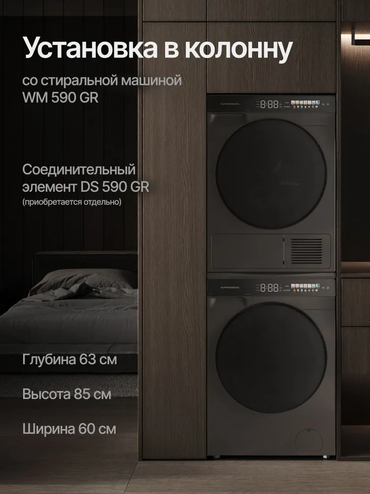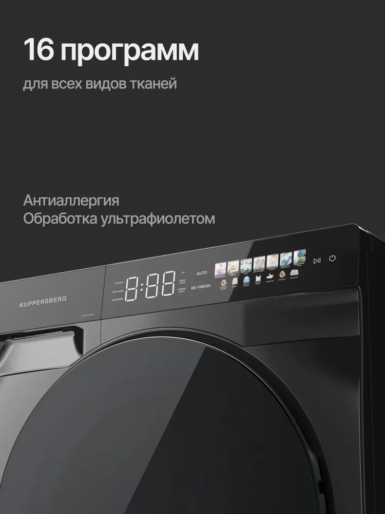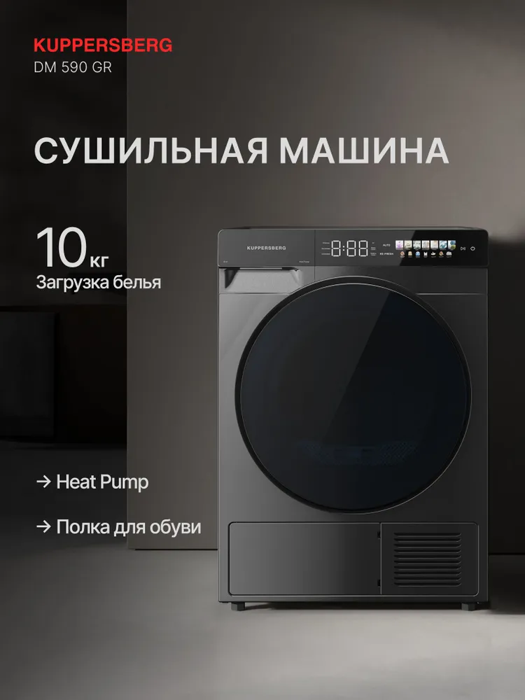 Сушильная машина Kuppersberg DM 590 GR — это надёжное и функциональное устройство для сушки белья. Она имеет фронтальный тип загрузки и вмещает до 10 кг белья, что делает её подходящей для больших семей. Машина оснащена сенсорным управлением и предлагает 16 программ сушки, включая режимы для хлопка, смешанных тканей, детской одежды и верхней одежды.