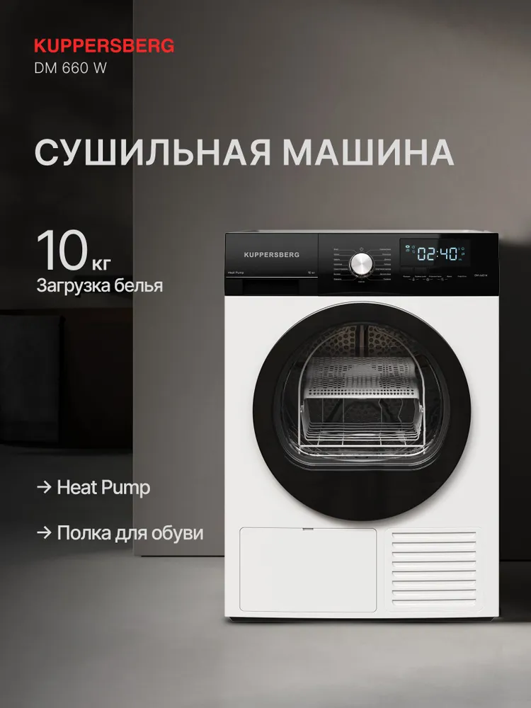 Сушильная машина Kuppersberg DM 660 W — это надёжное и функциональное устройство для сушки белья. Модель имеет электронное управление и фронтальную загрузку, вмещает до 10 кг белья. Особенностью данной сушильной машины является наличие теплового насоса, что обеспечивает эффективное и бережное сушение вещей.
