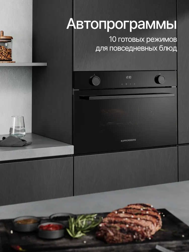 Встраиваемая микроволновая печь Kuppersberg HMW 611 BB — функциональное решение для установки в колонну, идеально сочетающееся с духовым шкафом HT 611 BB. Камера объёмом 34 литра подходит для приготовления и разогрева крупных блюд. Микроволны мощностью 900 Вт, гриль 1100 Вт и конвекция расширяют возможности приготовления — от быстрого разогрева до запекания и румяной корочки. 10 автоматических программ упрощают выбор настроек, а 5 уровней мощности позволяют точно адаптировать процесс под разные блюда. Внутренняя камера из нержавеющей стали практична в уходе, а поворотный стол диаметром 34,5 см обеспечивает равномерный прогрев. Тонированное чёрное стекло дверцы подчёркивает премиальный внешний вид и гармонично смотрится в современной кухне. Комбинированное сенсорное и поворотное управление, часы, таймер и блокировка от детей делают использование удобным и безопасным.