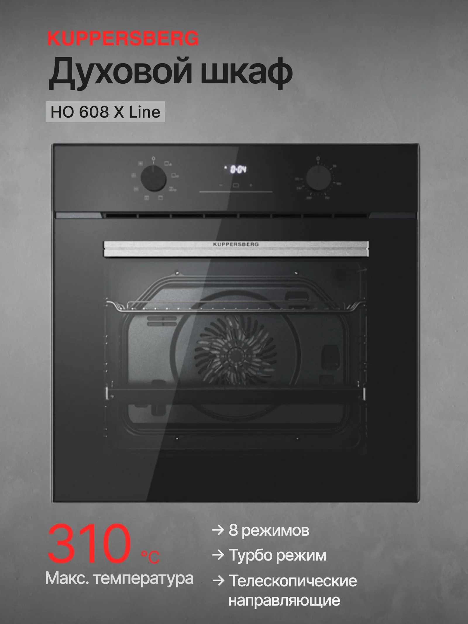 Серия духовых шкафов Kuppersberg HO 608 — это функциональные электрические духовки с расширенным набором режимов и высокой температурой нагрева. Объём камеры 78 литров позволяет готовить большие блюда и использовать несколько уровней одновременно. Максимальная температура до 310 °C подходит для интенсивного запекания, пиццы и работы с грилем. В духовке предусмотрено 8 режимов приготовления, включая традиционный нагрев, нижний нагрев, макси-гриль, макси-гриль с конвекцией, режим разморозки, а также нагрев с конвекцией и турбо-режимом для более быстрого и равномерного результата. Управление осуществляется с помощью поворотных регуляторов и дисплея, что делает настройку режимов простой и наглядной. Один уровень телескопических направляющих обеспечивает удобство и безопасность при работе с горячими противнями. Гидролизная очистка, съёмная дверца и съёмное внутреннее стекло упрощают уход за духовкой. Блокировка от детей и класс энергопотребления A делают использование комфортным и безопасным