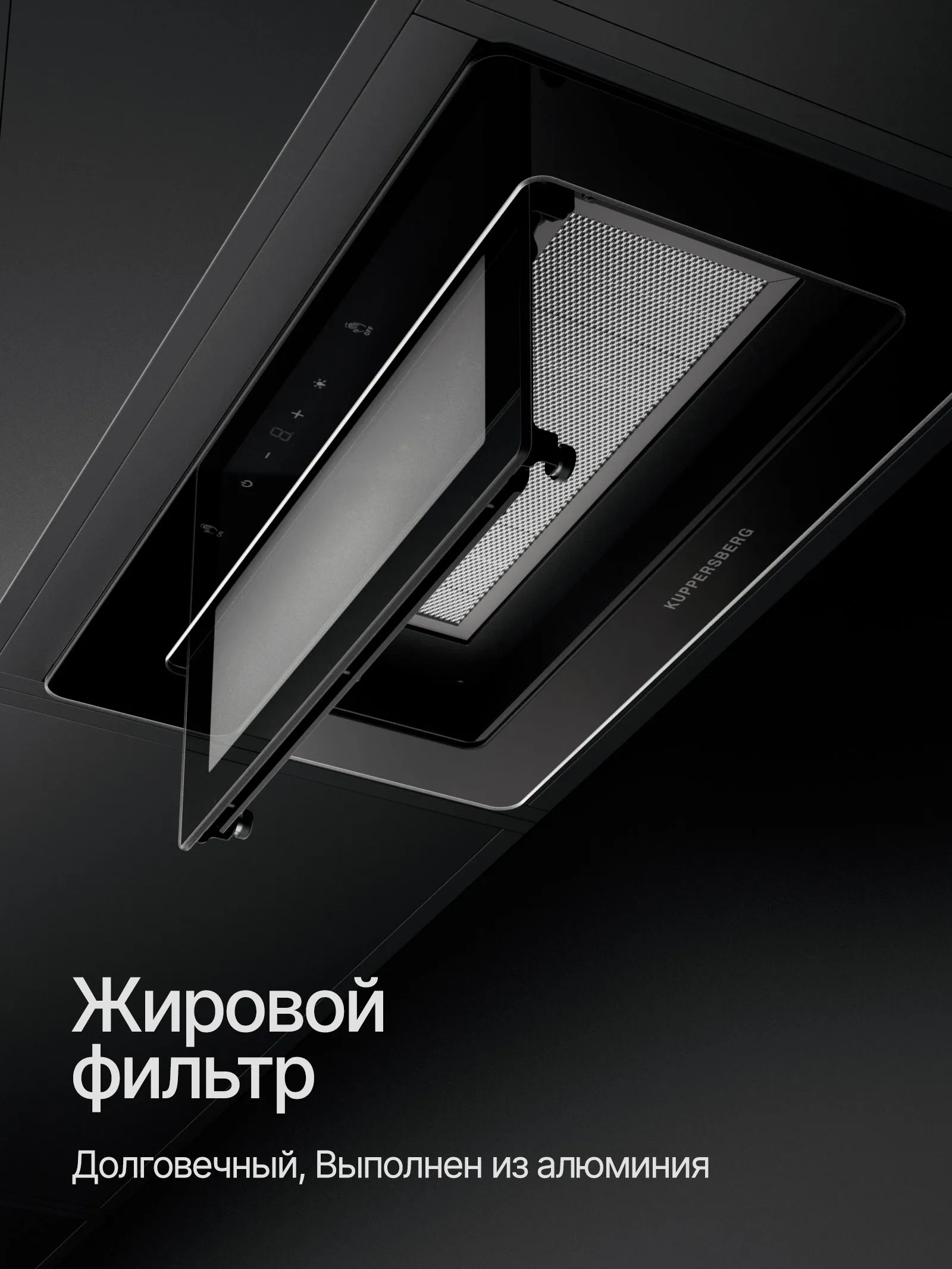 Наклонная кухонная вытяжка Kuppersberg INSHINE 60 BG — это высокотехнологичное решение для современной кухни, сочетающее в себе эффектный дизайн и впечатляющую мощность. Фасад прибора выполнен из элегантного закаленного черного стекла, которое дополняет интерьер и отличается простотой в уходе. Благодаря производительности до 1200 м3/ч в режиме отвода, модель эффективно справляется с очисткой воздуха в помещениях площадью до 35 кв. м.