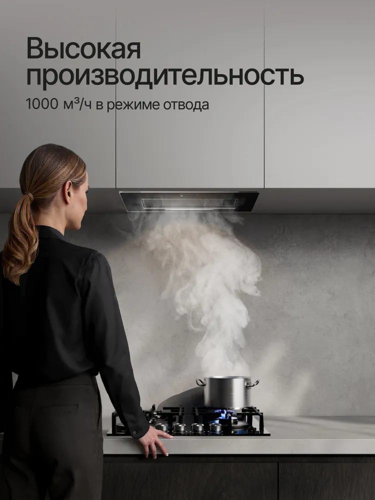 • Материал исполнения вытяжки фасад из закалённого стекла
