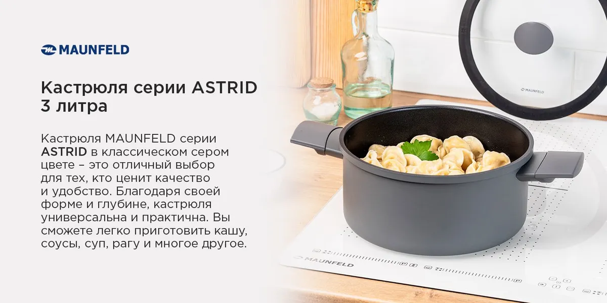 Кастрюля MAUNFELD ASTRID MF20ASTR1CR из кованого алюминия со стеклянной крышкой, 20 см,3 л
