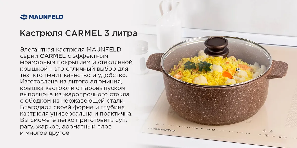 Кастрюля Maunfeld серии CARMEL- это отличный выбор для тех, кто ценит качество и удобство.