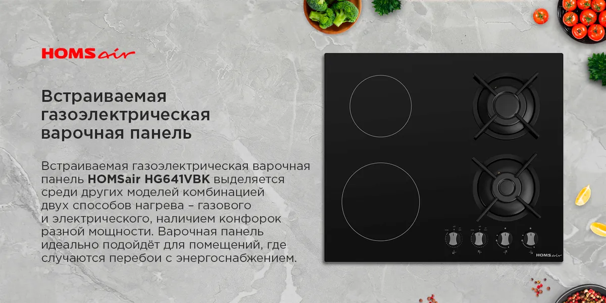 Комбинированная варочная панель HOMSair HG641VBK
