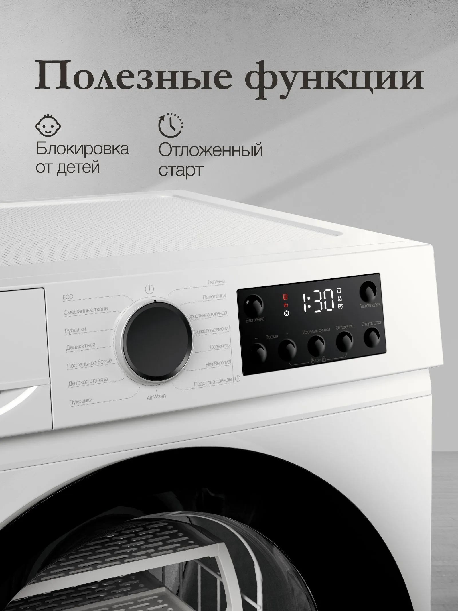• Уровень шума при сушке 66 дБ