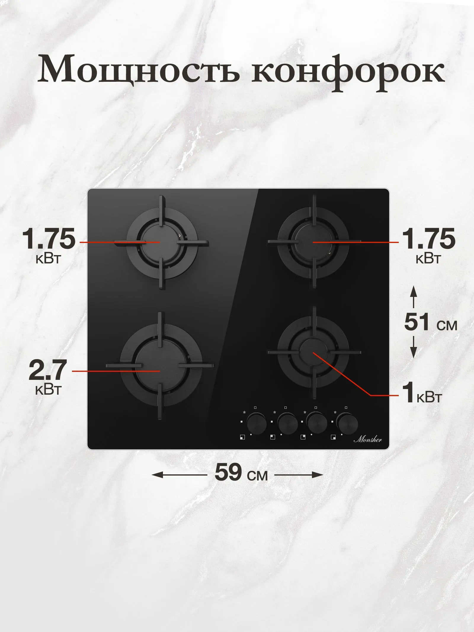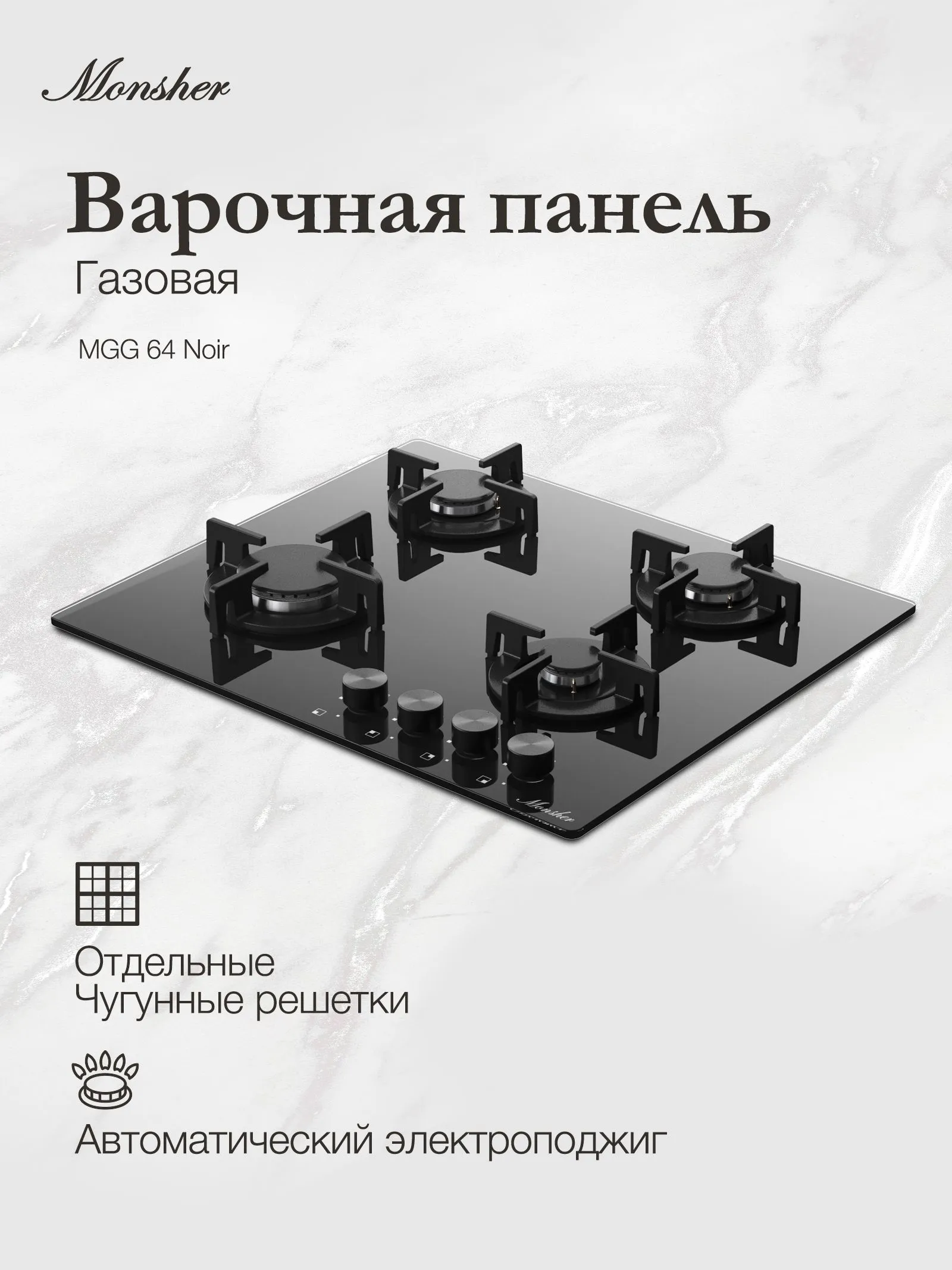 Газовая варочная панель MONSHER MGG 64 Noir