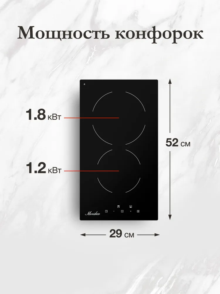 • Мощность конфорок, кВт: задняя: 1,8 кВт