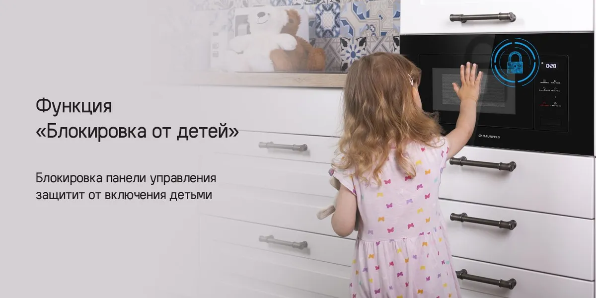 Про безопасность тоже подумали: есть блокировка от детей. Если дверь прибора закрыта, он просто не включится. В комплекте идет большая тарелка для поворотного стола диаметром 245 мм и решетка для гриля. Есть опция логичного выбора настроек и звуковой сигнал об окончании работы, который легко отключить.