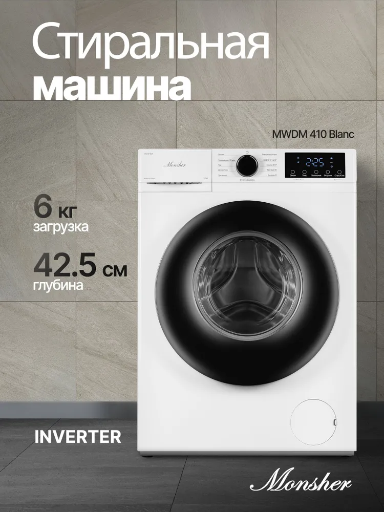 Стиральная машина Monsher MWM 410 Blanc — это современная и функциональная модель с фронтальной загрузкой. Она оснащена инверторным двигателем, который обеспечивает эффективное и тихое функционирование. Стиральная машина имеет класс энергопотребления A и класс стирки A, что гарантирует экономию электроэнергии и высокое качество стирки.