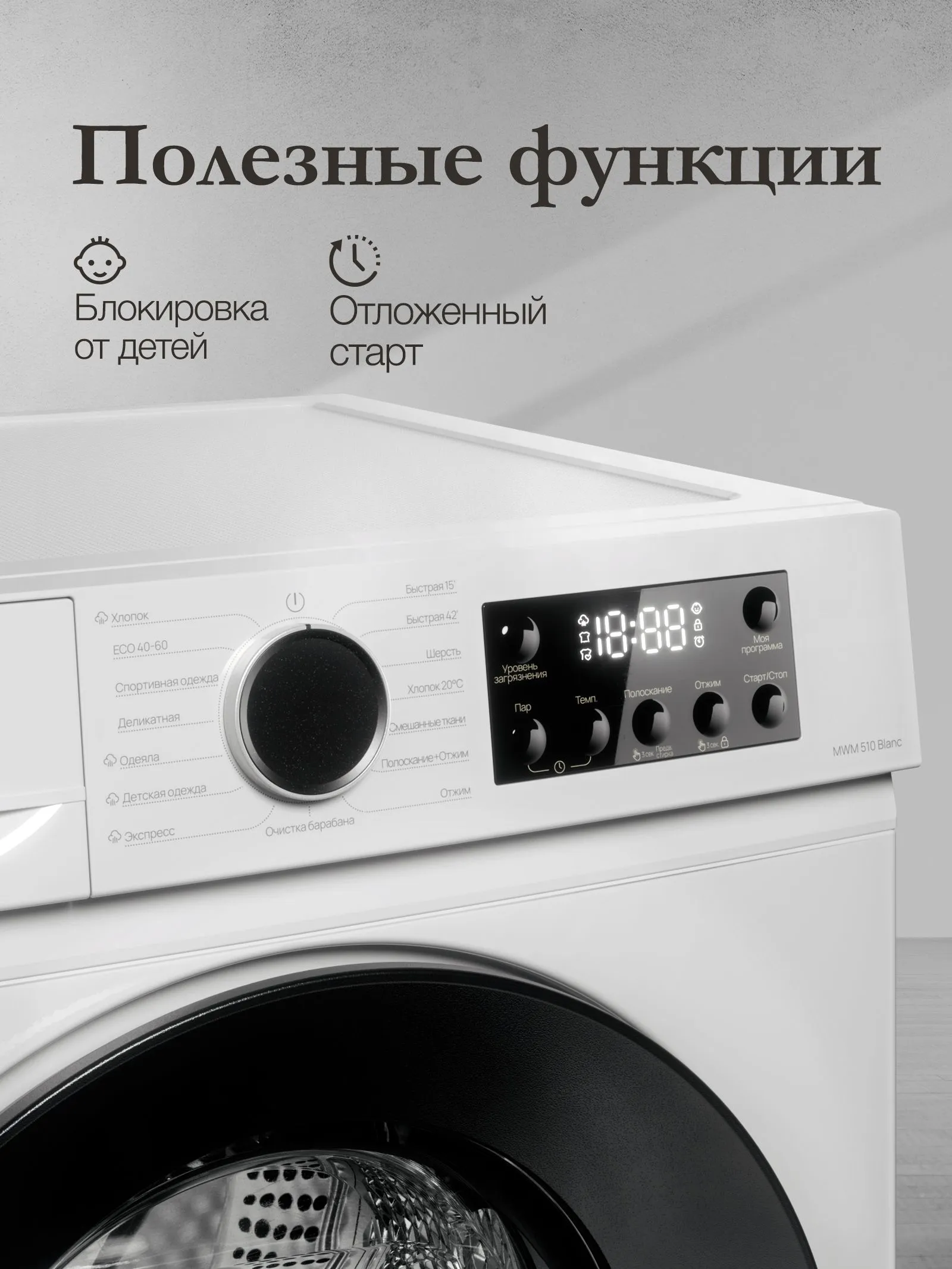 • Кол-во программ при стирке 15