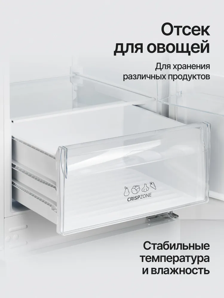Среди особенностей модели — электронное управление, суперзаморозка, три полки в холодильном отделении (две из них регулируемые), три полки на двери, а также три ящика для продуктов в морозильной камере. Есть отсек для овощей и полка для яиц.