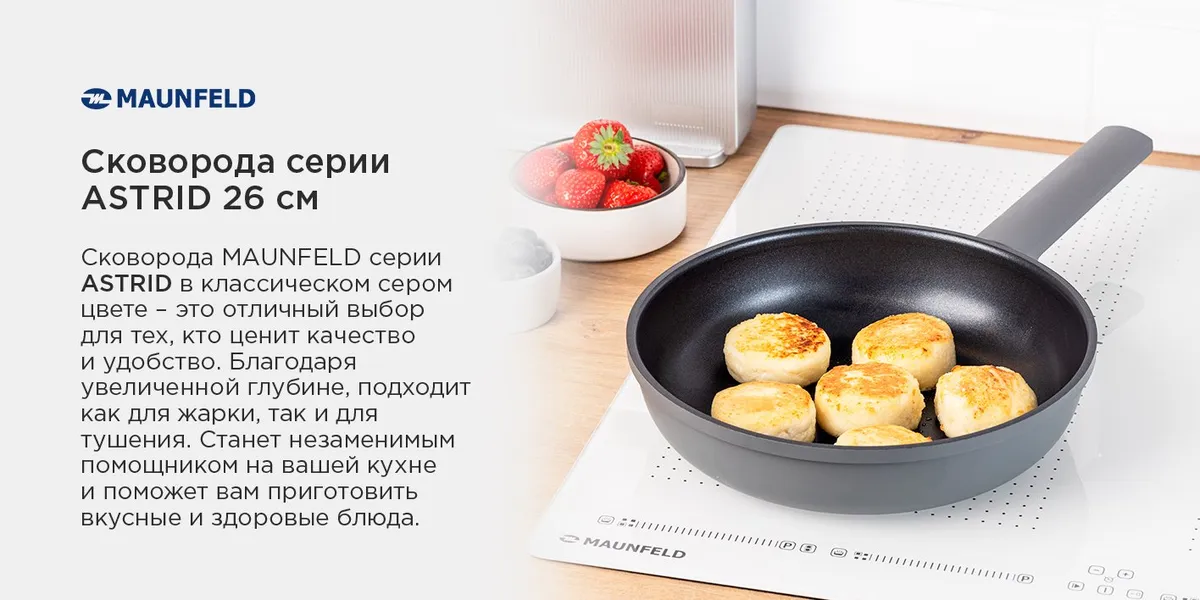 Сковорода глубокая MAUNFELD ASTRID MF26ASTR1DF из кованого алюминия, 26 см