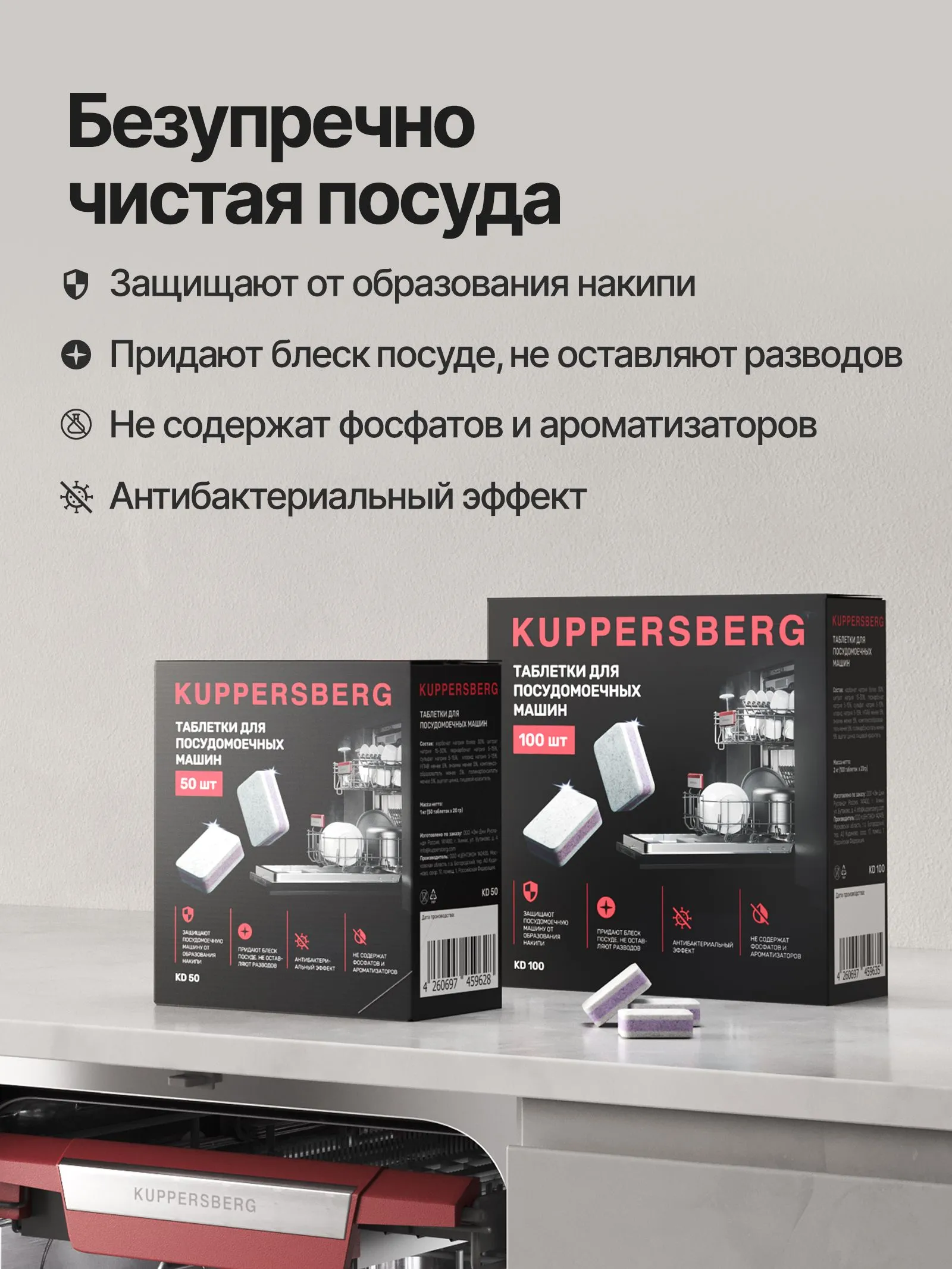 Таблетки для посудомоечных машин Kuppersberg KD 50 — эффективное средство для обеспечения чистоты посуды. Вес товара составляет 1000 г, а с упаковкой — 1100 г. Продукт не представляет опасности при использовании. Таблетки Kuppersberg обеспечивают высокое качество мытья и помогают поддерживать оптимальную работу вашей посудомоечной машины.