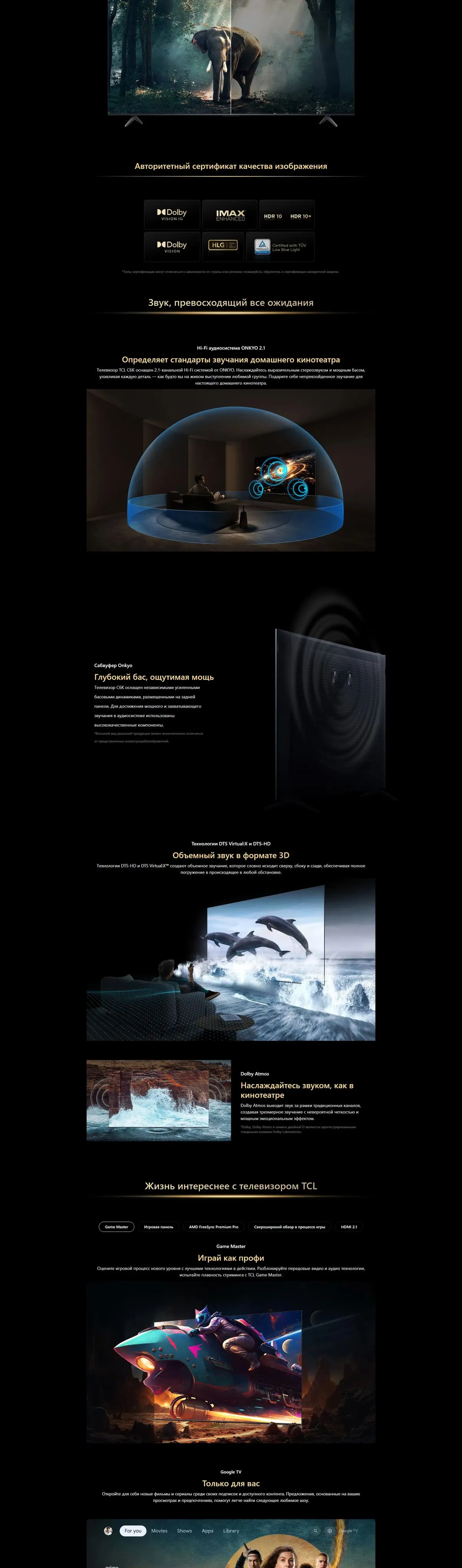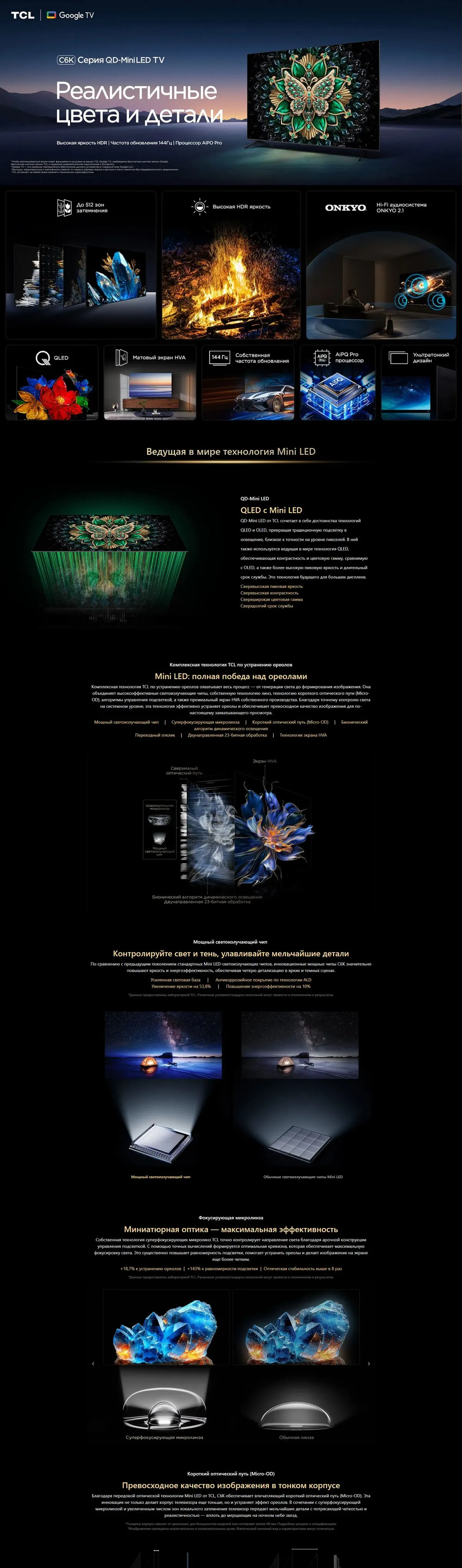 Телевизор TCL 55C6K (2025) QD-Mini LED, Google TV, 4K UHD, черный