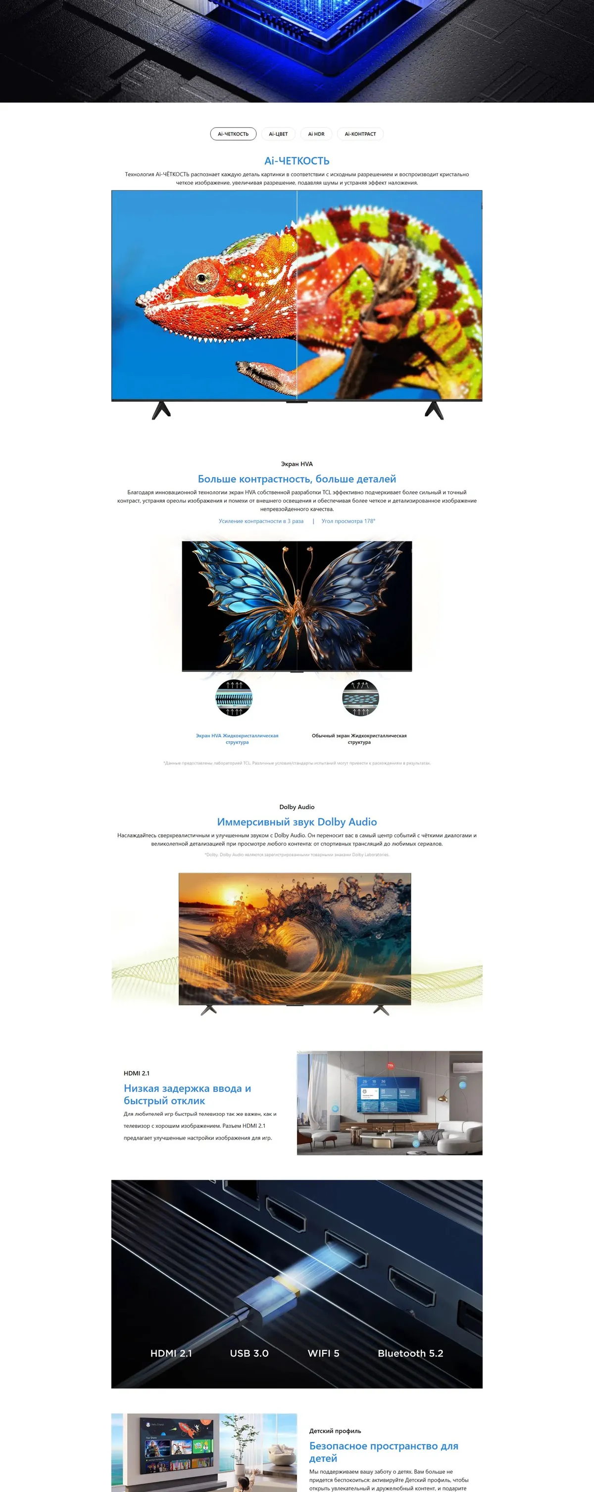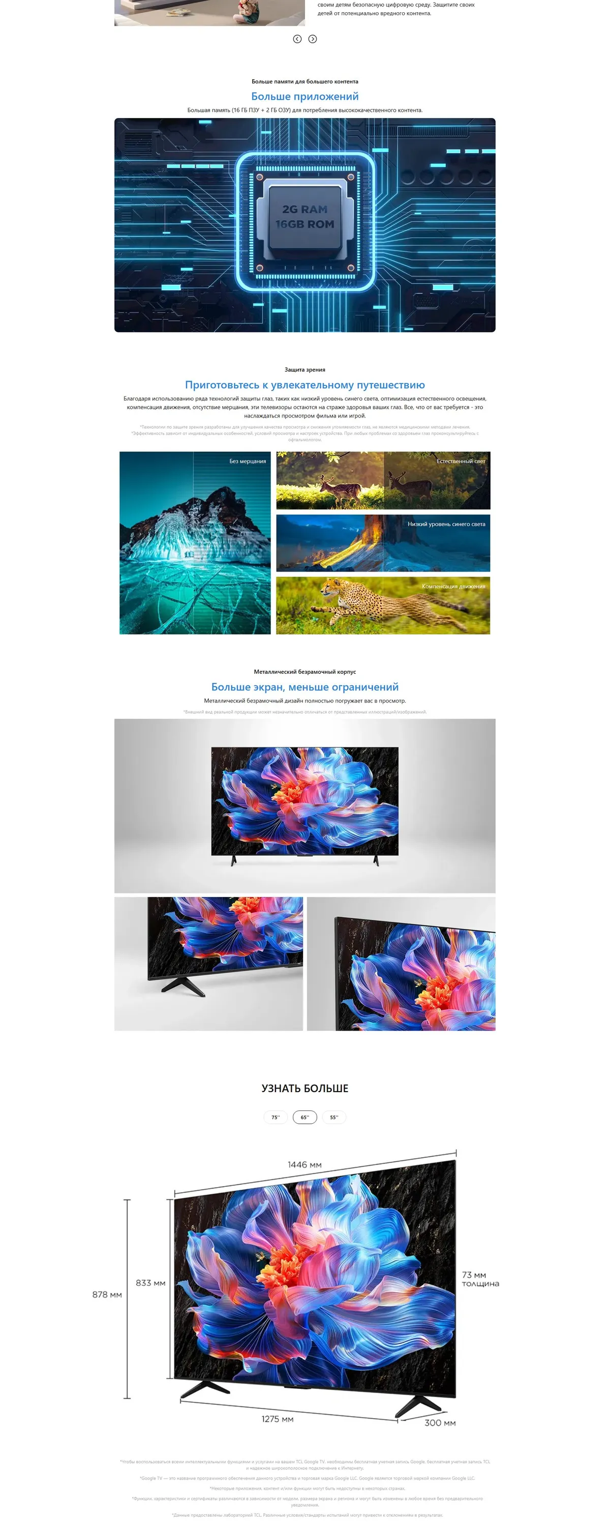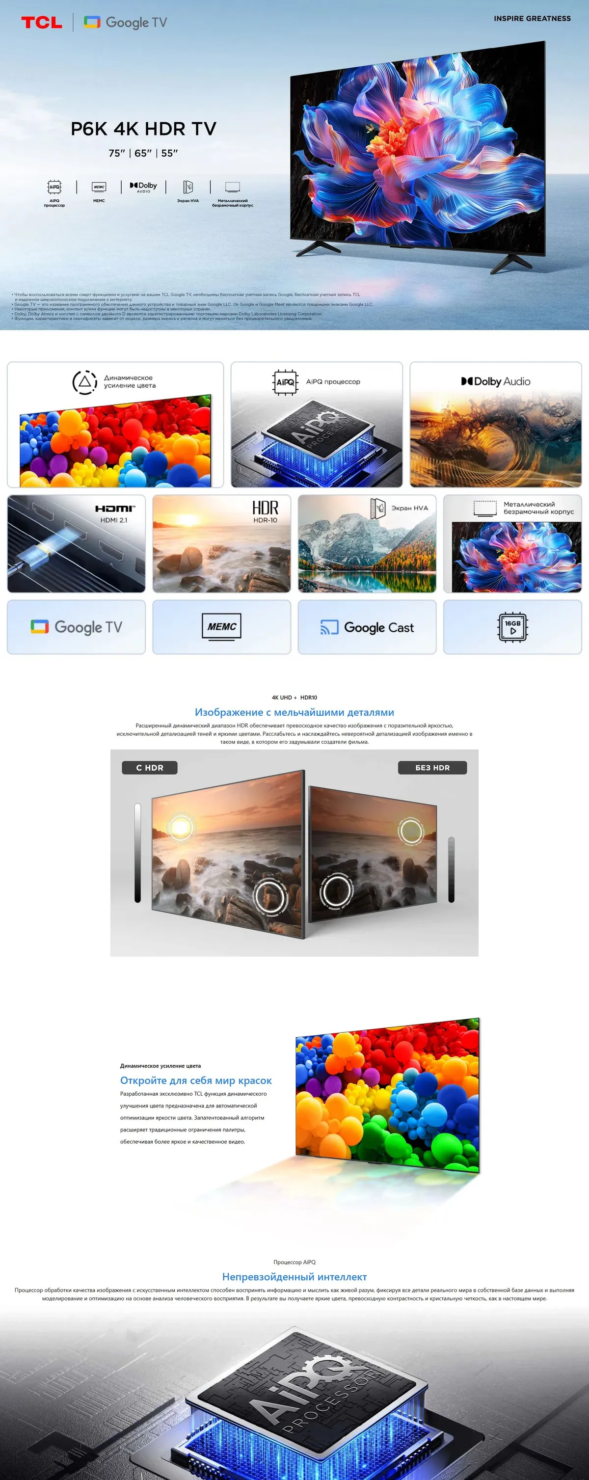 Телевизор TCL 65P6K Google TV 4K UHD, черный