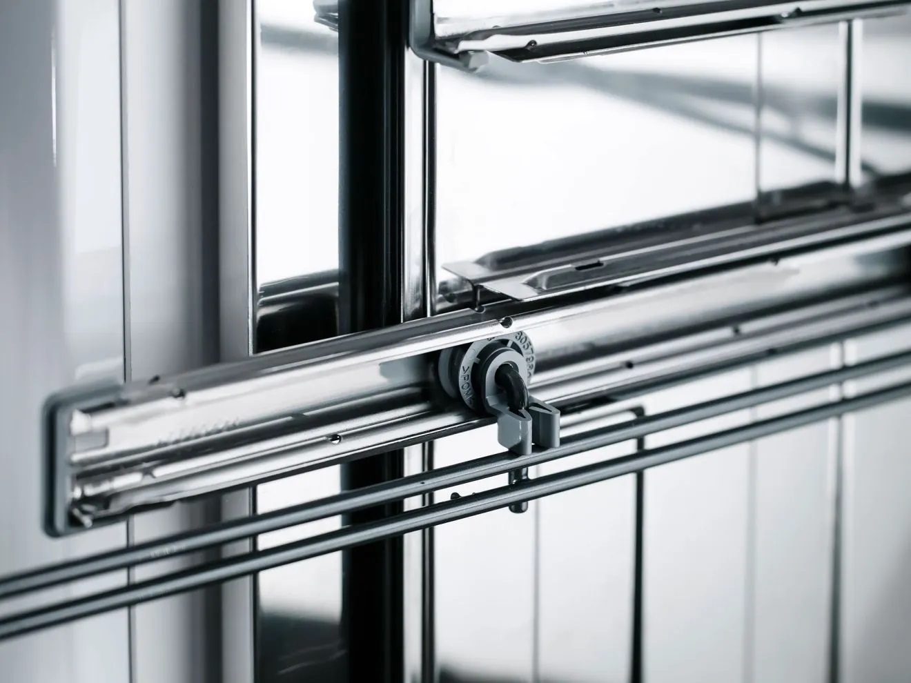 ASKO использует телескопические направляющие с шариковыми подшипниками, чтобы корзины двигались плавно и бесшумно. Для удобства загрузки и выгрузки посуды, вы также можете полностью вынуть корзину!